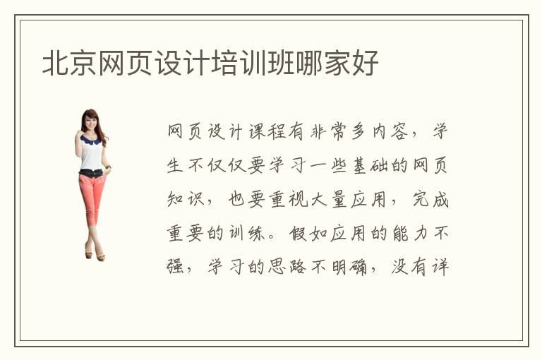 网页设计课程有非常多内容,学生不仅仅要学习一些基础的网页知识,也要重视大量应用,完成重要的训练。假如应用的能力不强,学习的思路不明确,没有详细的训练任务,进步的速度会比较慢。有的同学感觉自己的学习速度跟不上周围优秀的同学,所以会考虑网页设计辅导班的帮助,由专业的网页开发老师提供细致的指导。北京网页设计培训设计培训班哪家好,主要看每个网页设计培训班的老师、教学速度、培训内容。部分网页设计辅导班的老师非常专业,具有多年培训经验,每个阶段都有详细的课程介绍,同学收获会十分明显。网页设计要学什么,网页设计的课程非常多,包括移动界面设计、网页设计基础、平面设计、企业画册设计等等,因为工具非常多,学生也要掌握一些设计的工具。