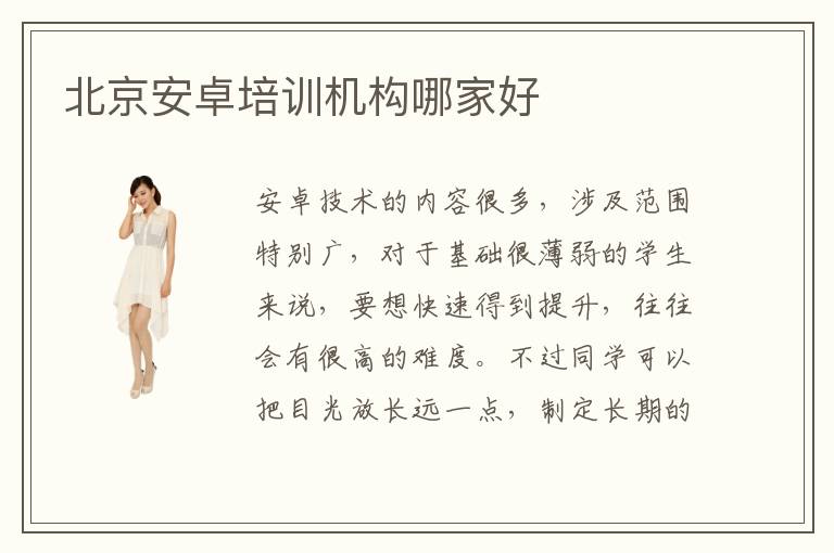 安卓技术的内容很多,涉及范围特别广,对于基础很薄弱的学生来说,要想快速得到提升,往往会有很高的难度。不过同学可以把目光放长远一点,制定长期的学习规划,由浅入深,一步步掌握重点内容。不少学生感觉安卓技术太难懂,所以会考虑报名安卓辅导机构,争取赢得更多进步。北京安卓培训安卓培训机构哪家好,其实很难做一个一致的判断,主要就是安卓培训机构的教育水准不同,学习的氛围不太一样,同学的评价也有差别。假如学生找到一些口碑很好的院校,说明机构的教学质量比较出众,值得大家期待。安卓辅导班的授课时间大概是一个月到半年,但事实上同学的学习进展不同,基础水平不一样,时间当然要波动。安卓开发要学什么,主要用到的是Java,所以学生要着重关注这些重要编程。