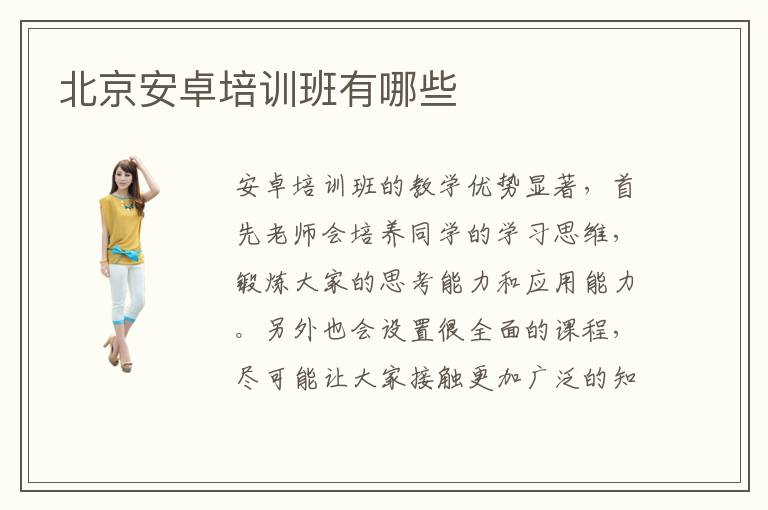 安卓培训班的教学优势显著,首先老师会培养同学的学习思维,锻炼大家的思考能力和应用能力。另外也会设置很全面的课程,尽可能让大家接触更加广泛的知识。学生报名培训班后,只要认真学习,跟上老师的步伐,掌握重点的内容,成绩会相当理想。北京安卓培训班有哪些,很难做出一个清晰的判断,因为安卓培训班的综合能力、培训的速度、老师的水平等等都不同,同学也要认真对比,结合自己所学的课程进行筛选。安卓培训时间大概1个月到4个月,很多学生都很想成为安卓开发工程师,但学习时间有限,技术能力不够优越,很容易被淘汰,但得到安卓培训班的帮助后,可以在几个月内掌握一门技术,也能提高个人的应用能力,在工作中有良好的发挥,争取更好的表现。