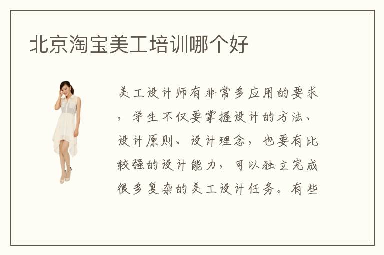 美工设计师有非常多应用的要求,学生不仅要掌握设计的方法、设计原则、设计理念,也要有比较强的设计能力,可以独立完成很多复杂的美工设计任务。有些学生满足现状,不太愿意积累知识,也没有认真学习重要的内容,学习的障碍非常多。为了加快学习步伐,掌握更多重点内容,可以报名某些知名的教学机构,由老师分析重点课程。北京淘宝美工培训哪个好因人而异,毕竟大家所选的课程不一样。有些同学选择的是基础课程,多数培训机构都能提供不错的教育方案。但也有部分学生选择的是应用课程,需要找到一些应用能力比较强的辅导机构。淘宝美工培训班的课程非常丰富,包括基础课程、美工理论课程、美工应用课程、兴趣引导课程。淘宝美工的工资大概在1万到2万,但如果水平更高,待遇会更高。
