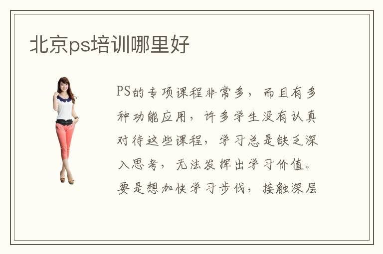 PS的专项课程非常多,而且有多种功能应用,许多学生没有认真对待这些课程,学习总是缺乏深入思考,无法发挥出学习价值。要是想加快学习步伐,接触深层次的PS知识,学生应当认真花时间理解,慢慢掌握ps培训班的课程。北京ps培训哪里好,这时要看一个培训机构好不好,应该分析每个培训班的教学方式、课程内容、老师的水平等等因素。有些学校的老师特别专业,可设置全面的辅导内容,采用多样化教学方式,让大家看到显著进步。ps远程课程相当重要,学生可以根据个人的时间安排学习进度,结合个人需求以及学习的方式,挑选学习的内容,从而使学习更有针对性。ps有哪些应用,主要应用是网页制作、美工制作、以及创意合成、效果图渲染,这是都是设计师需要学习的课程。