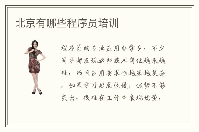 程序员的专业应用非常多,不少同学都发现这些技术岗位越来越难,而且应用要求也越来越复杂,如果学习进展很慢,优势不够突出,很难在工作中表现优势,甚至会逐渐被淘汰。不少学生也意识到这些基本的情况,想得到更多进展,那么可以多了解一下北京有哪些程序员培训机构,由老师来安排课程,反复进行训练,成绩会好一点。程序员培训机构有没有用,程序员培训机构优势突出,教学内容众多,也有利于增强同学的学习能力,改善学习的思维。不少同学基础很差,连程序专业的基础架构都没有,学习方向当然会很模糊,进程也会特别慢。但这个时候可以考虑程序员入门教学课程,老师会结合许多入门级的程序专业训练,让每一位同学理解更透彻,对往后的发展也有许多帮助。