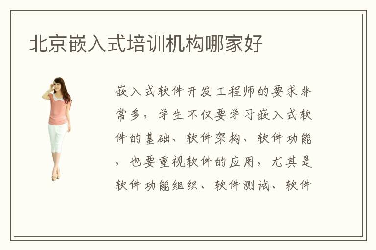 嵌入式软件开发工程师的要求非常多,学生不仅要学习嵌入式软件的基础、软件架构、软件功能,也要重视软件的应用,尤其是软件功能组织、软件测试、软件程序开发。同学并不是很理解这些内容,学习过程的负担特别重,所以想知道北京嵌入式培训哪里好,尽可能快速找到好机构,争取更多学习优势。嵌入式培训班热门吗,嵌入式软件培训软件培训班当然很热门,因为这些培训机构采用寓教于乐的方式,让人本复杂的枯燥的软件基础知识,通过老师的指点变得更加有趣。而且老师会尝试介绍其他专业的学科,让大家的视野更加开阔,在掌握嵌入式软件开发知识的同时,也能学习更广阔的内容。如有同学也想参加这些课程,不妨多多对比这些辅导班的教学优势,培训的目标,结合自己的需求考虑。