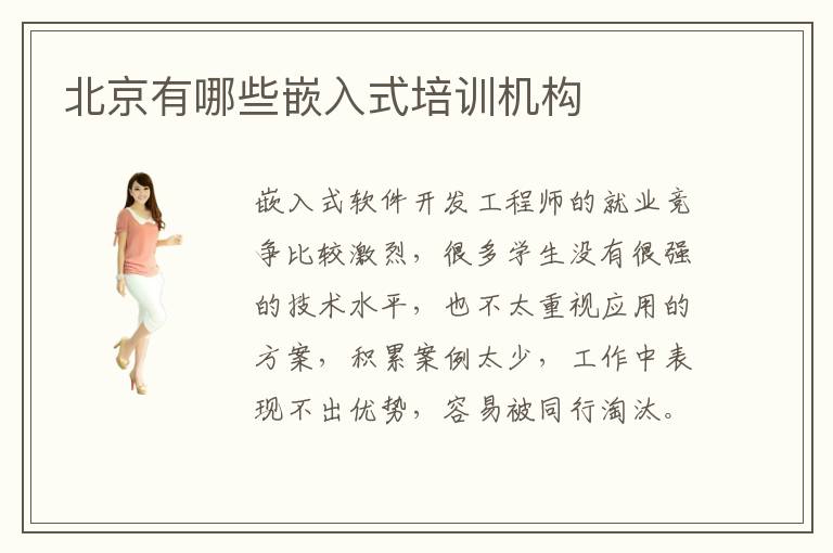 嵌入式软件开发工程师的就业竞争比较激烈,很多学生没有很强的技术水平,也不太重视应用的方案,积累案例太少,工作中表现不出优势,容易被同行淘汰。如果大家想在工作上有很好的表现,可以看看北京嵌入式培训机构哪家好,了解培训机构的教学能力、培训速度、教学内容等等。嵌入式培训机构主要课程有很多,而且跟具体应用相关。因为学校意识到,假如同学的嵌入式软件应用能力不强,也没有基础的积累,都会影响工作,所以会安排很多基础的应用课程,让大家提高专业的学习速度,改善学习的进程。不过学生学习这些技术内容时,不要只依赖辅导机构,应该有独立的思考,自己整理知识框架,然后结合工作应用,进行多次复习和训练,短期内应该会有一点改善空间。