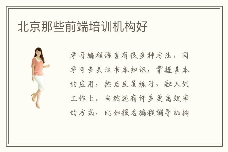 学习编程语言有很多种方法,同学可多关注书本知识,掌握基本的应用,然后反复练习,融入到工作上。当然还有许多更高效率的方式,比如报名编程辅导机构,老师会结合前沿的技术以及同学的应用能力,安排恰当的课程,进行针对性的训练,使大家快速赢得进步。大家要想知道北京学编程那里培训好,应该看看编程辅导班的辅导能力、培训目标。因为有些学校确实相当突出,教学水平很高,培训目标明确,学生很快就看到收获。编程辅导班的授课方法主要有网络授课、大班教学、1对1授课。网络授课非常受欢迎,因为在家上课,不需要受到空间地点限制。编程有什么应用,编程的应用很广泛,比如操作系统应用、软件开发工具、计算机操作系统、网络优化,作为计算机专业的同学,要认真学习这些学科。