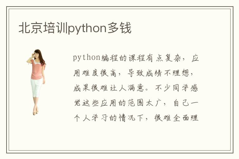 python编程的课程有点复杂,应用难度很高,导致成绩不理想,成果很难让人满意。不少同学感觉这些应用的范围太广,自己一个人学习的情况下,很难全面理解重要的知识,所以会寻找技术辅导班的帮助,尽可能学习更多深层次的应用。python培训北京多少钱取决于个人选择的学校类型和课程类型。假如学生选择高难度的课程,需要花比较长的时间,也要求更高水平的老师,报名费可能要5000到1万元。python网上教学机构本身就有很多种优势,包括教学课程很丰富,学习过程非常有趣,学习氛围非常浓郁,要是学生可以得到这些学校的指导,会有很好的学习成果。python应用很多,比较常见的是前端开发与设计、网页工程与制作、软件开发,都有非常重要的应用价值和工作价值。