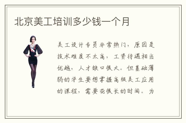 美工设计专员非常热门,原因是技术难度不太高,工资待遇相当优越,人才缺口很大。但基础薄弱的学生要想掌握高级美工应用的课程,需要花很长的时间。为了缩短学习时间,提高学习效率,学生可参加高级美工培训班的课程。北京高级美工培训多少钱,应该看看这些辅导班的教学能力和课程类型,然后再做出决定。有些高级美工培训机构的教学能力很普通,教学优势不够突出,培训的速度也慢,学生收获比较少,培训费用会下降。高级美工有哪些课程,主要的课程有美工设计软件、平面设计原则、设计基础、设计案例。同学要是有能力掌握高级美工应用领域的技能,将会有非常好的发展机遇,可以应聘平面设计师、界面设计师、网页设计师等等工作,取得很高的待遇,赢得更广阔的前景。