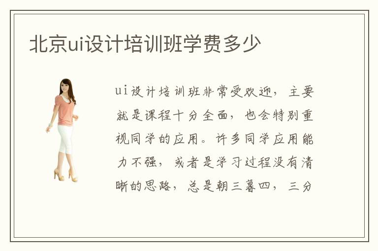 ui设计培训班非常受欢迎,主要就是课程十分全面,也会特别重视同学的应用。许多同学应用能力不强,或者是学习过程没有清晰的思路,总是朝三暮四,三分钟热度,没有办法掌握前沿技术。但是报名辅导机构后,很多问题就能迎刃而解。北京ui设计培训班学费多少,报名学费可能是5000~2万元,其实每个培训班的收费标准不同,主要取决于ui培训班的教学成果以及教学的课程类型。假如ui培训班的教学成果非常突出,而且培训质量高,学生非常满意,收费标准往往比其他学校更高。ui设计培训设计培训班的优点主要就是让整体的氛围变得更加活跃,大家有更强烈的课堂参与感,学习过程充满乐趣。ui设计是什么,ui是一种交互设计和界面设计,在网络优化和界面布局中有重要的价值。