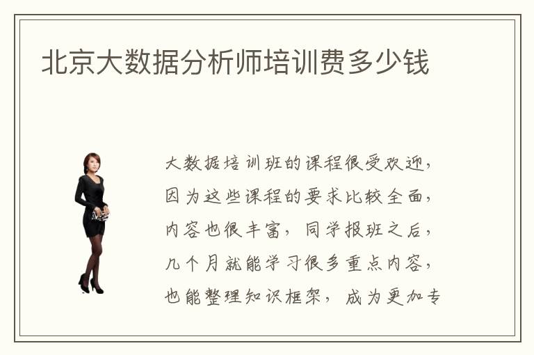 大数据培训班的课程很受欢迎,因为这些课程的要求比较全面,内容也很丰富,同学报班之后,几个月就能学习很多重点内容,也能整理知识框架,成为更加专业的数据分析师。若同学也想快速掌握数据分析的内容,可报名数据分析指导班,相信会有明显收获。北京大数据分析师培训费多少钱,其实培训班的收费标准参差不齐,有些学校的教育能力强,培训思路清晰,培训质量高,成果有保障,收费标准会上升。另外大数据分析师培训时间也有所不同,收费也会有变化。比如有的学生学习速度特别慢,导致学习时间延长,收费标准会上升。大数据分析师的工资大概在1万到5万元,其实主要跟个人能力直接相关,假如数据分析的能力很强,工作经验非常丰富,待遇自然就不会太差。