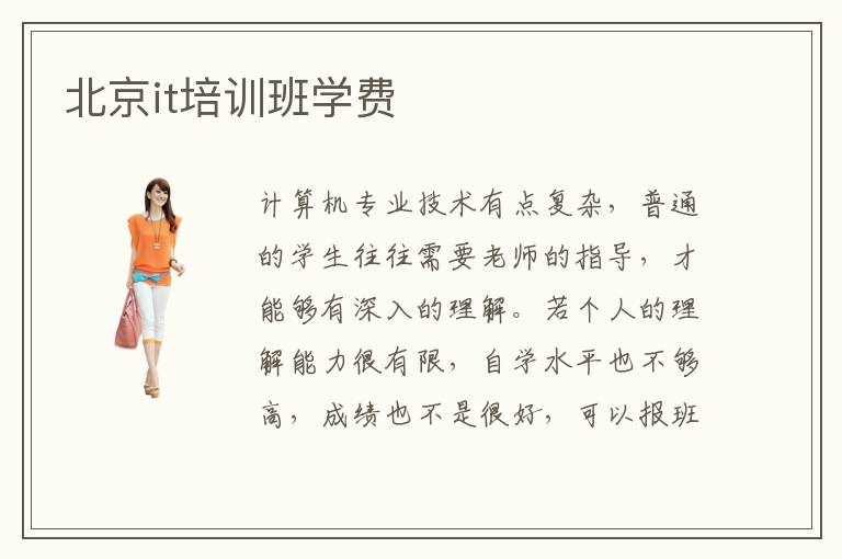 计算机专业技术有点复杂,普通的学生往往需要老师的指导,才能够有深入的理解。若个人的理解能力很有限,自学水平也不够高,成绩也不是很好,可以报班学习。专业的老师制定课程,帮助大家详细分析重点的技术,从而取得优异成绩。北京it培训班学费可能就是5000元到25000元,大家在学习的时候,可以着重关注一些优质的辅导机构,老师可以全程提供辅导,就算同学的学习状态不够好,老师会帮助同学及时调整,从而拥有更高的专业学习效率,而越高级的学校,往往收费标准就会上升。it培训班的师资水平非常厉害,几乎每个it老师都有严谨的教学方法,可以结合行业动态,为大家介绍大量的工作应用。所以学生报名后,可以非常清楚地知道it行业的前景,也能针对这些趋势得到更多进展。
