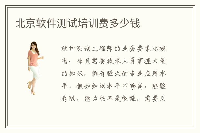 软件测试工程师的业务要求比较高,而且需要技术人员掌握大量的知识,拥有强大的专业应用水平。假如知识水平不够高,经验有限,能力也不是很强,需要反复练习,从而达到更高的标准。有的同学感觉这些技术特别难,也没有清晰的复习方案,所以会很困惑。这时可报名辅导班,完成老师的教学课程,提高个人的应用能力。北京软件测试培训费多少钱,软件测试培训班的收费标准参差不齐,因为学生的报名课程、学校的类型、老师的水平都不一样。有些软件测试辅导班的综合实力高,老师的水平突出,报名费比其他普通院校更高。不少同学基础薄弱,会考虑软件测试入门基础课程学习难度不高,也能接触非常广泛的软件测试的内容,报名费用比其他复杂的应用课程更便宜。