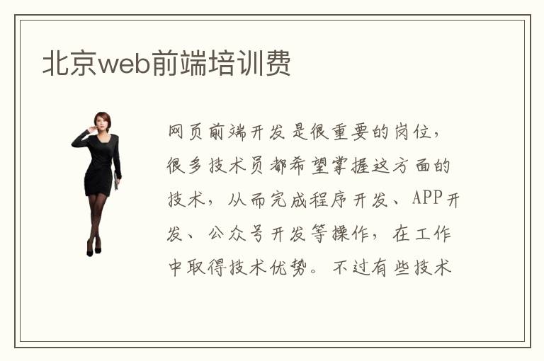网页前端开发是很重要的岗位,很多技术员都希望掌握这方面的技术,从而完成程序开发、APP开发、公众号开发等操作,在工作中取得技术优势。不过有些技术确实比较难,要求很高,一个人学习难以获得进展,不如报名专业班,由老师进行教学,效率也许会有更高保障。北京web前端培训费大概是3000到2万,但事实上报名费跟课程以及学校类型有大的联系。假如学校水平高,课程也非常丰富,报名费也许会上升。web前端网络课程有很重要的价值,同学报名的时候,可能并没有太多的学习时间,但选择网络课程的方式,有利于节约时间,还能完成很多学校布置的任务。web前端是什么,主要指的就是网页前台部分,展示给用户浏览的网页,有非常多重要的要求,技术人员要认真学习。