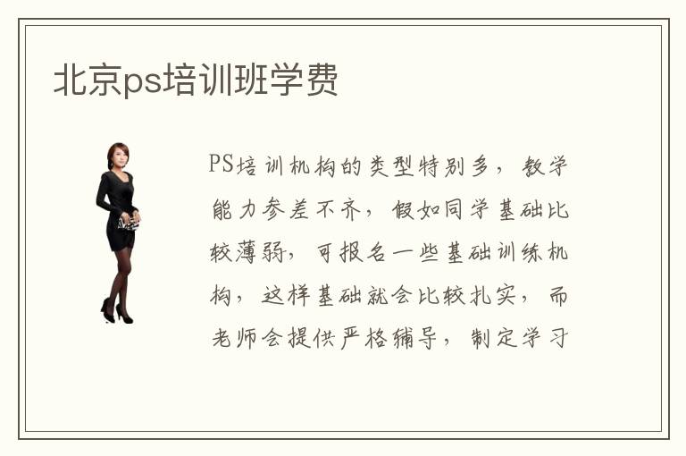 PS培训机构的类型特别多,教学能力参差不齐,假如同学基础比较薄弱,可报名一些基础训练机构,这样基础就会比较扎实,而老师会提供严格辅导,制定学习方向,思路会更清晰,效率也会更高。有部分同学想要提高工作应用水平,那么可以选择培训班的就业辅导课,老师把工作当中的要求和应用训练的课程带给大家,从而使大家的应用能力更高。北京ps培训班学费大概是5000~9000,但事实上同学报名的课程难度不一样,所以报名费有差异。假如选择高难度课程,学习时间有延长,要求更高水平的辅导机构,报名费当然就会上升。ps培训班小班教学有很强的针对性,学生的学习效果会好很多。ps有哪些应用,主要应用有平面设计、图片处理、艺术设计、网页制作等等。