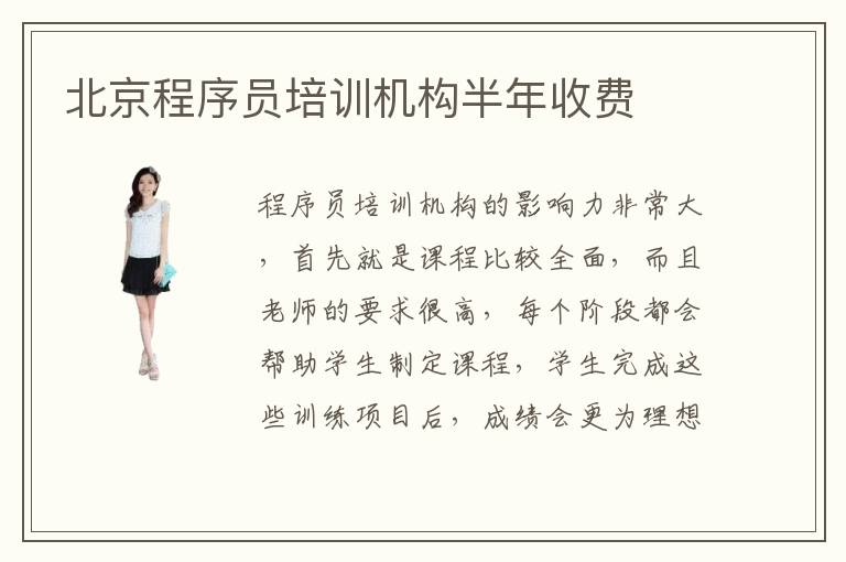 程序员培训机构的影响力非常大,首先就是课程比较全面,而且老师的要求很高,每个阶段都会帮助学生制定课程,学生完成这些训练项目后,成绩会更为理想,知识体系更加全面,能力也会更强。北京程序员培训机构半年收费,可能在5000~2万元,事实上培训机构的综合能力不同,收费标准存在变化。程序员培训机构作用在于为同学安排许多核心的课程,也会介绍很多基础应用和案例,帮助大家掌握工作要求。假如同学的学习思路不清晰,或者工作的能力不强,在工作上都会影响个人表现,但得到培训机构的帮助后,学生可以迅速理解专项内容,也能提高工作能力。程序员的待遇相当不错,有些技术人员每个月都能获得1万到3万的待遇,要是水平很高,经验丰富,待遇还会翻倍。