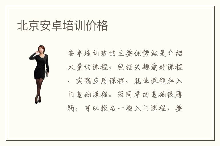 安卓培训班的主要优势就是介绍大量的课程,包括兴趣爱好课程、实践应用课程、就业课程和入门基础课程。若同学的基础很薄弱,可以报名一些入门课程,要是应用能力不够强,可以参加某些就业辅导课或者实践应用课,要是对这些课程很感兴趣,可以报名兴趣辅导课。北京安卓培训价格可能需要6000~1万元之间,因为同学的水平不同,报名的专项课程也有差异,学费就会存在一点点变动。有些同学基础特别扎实,想学习高难度的安卓技术课程,往往报名费用就会提高。但如果个人技术水平很有限,基础不够扎实,会选择入门级的课程学习,时间缩短,报名费也会下降。安卓培训的帮助特别多,比如详细介绍重点内容,还会开拓学习方向。安卓课程有哪些,主要有安卓开发技术、编程语言、程序开发设计等等。
