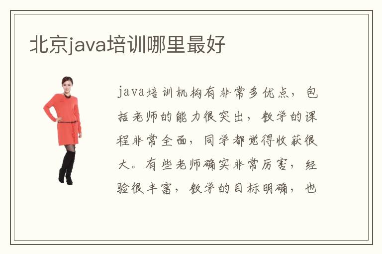 java培训机构有非常多优点,包括老师的能力很突出,教学的课程非常全面,同学都觉得收获很大。有些老师确实非常厉害,经验很丰富,教学的目标明确,也能够为大家解决很多应用的难题,学生报名后会有很大的改进。北京java培训java培训哪里最好,其实每个培训班的综合能力、教学的方式、培训侧重点都不太一样,教学质量也有差别。部分培训班经验丰富,了解行业的变化,也知道同学的弱点,所以会很快找到解决的方法。但也有部分学校经验不太丰富,没有根据行业动态以及学生的需求安排课程,导致学生的学习进度很慢。java培训班的就业情况相当好,许多学生就是因为找不到工作,所以会报名java基础教程,在辅导班老师的指导下,掌握很多基础应用,从而得到工作的机会。