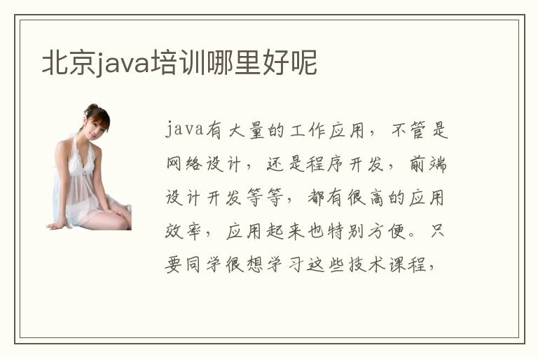 java有大量的工作应用,不管是网络设计,还是程序开发,前端设计开发等等,都有很高的应用效率,应用起来也特别方便。只要同学很想学习这些技术课程,可参加专业辅导班的帮助,提高个人的应用能力,达到更强的工作目标。北京java培训java培训哪里好呢,其实要想选择优质的培训机构,应该看看这些培训机构的课程内容、教学的方式、学习氛围。不少学校的教学氛围都非常浓郁,学生可以相互帮助,相互提升,学习过程也充满乐趣。java培训班的就业率很高,许多技术人员因为找不到合适的工作,所以会报名培训班,强化个人技术水平,从而得到更多工作。java特点主要就是应用范围广,操作很简单,有多种多样的功能。学生可以用于很多个领域,也能争取自己的工作优势。