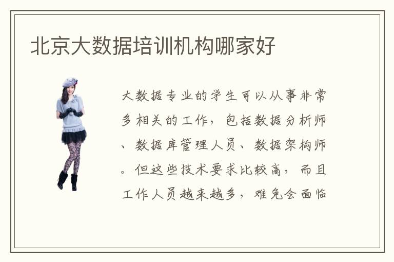 大数据专业的学生可以从事非常多相关的工作,包括数据分析师、数据库管理人员、数据架构师。但这些技术要求比较高,而且工作人员越来越多,难免会面临着激烈的竞争。若同学的技术水平很有限,没有办法完成复杂任务,会影响个人工作表现,逐渐被行业淘汰。不少同学希望快点理解这些内容,从而取得显著进步,会报名大数据培训机构,得到大量的训练。北京大数据培训机构哪家好,一般情况下,教学水平高,口碑比较好,资源配套设施丰富的培训机构,都能为大家带来很好的复习效果。假如学生基础很普通,需要学习很多大数据入门教学,老师就会大大提高入门课程的比例。要是学生掌握比较好,就可以提高学习难度,让大家一步一步掌握更高难度的大数据的课程。