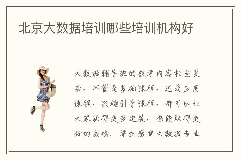 大数据辅导班的教学内容相当复杂,不管是基础课程,还是应用课程、兴趣引导课程,都可以让大家获得更多进展,也能取得更好的成绩。学生感觉大数据专业的知识很难,自己一个人学习的状况下很难获得进步,不得不选择辅导班的协助,得到更多进步的机会。北京大数据培训哪些培训机构好,一般情况下,经验丰富、资源比较多、师资力量雄厚的培训机构都会有很好的教学成果。假如学校拥有多年经验,配套设施完善,师资力量很强大,往往会为大数据专业的同学带来非常细致的课程。大数据小班教育有很明确的针对性,许多同学长时间都没进展,就是因为缺乏目标,而辅导老师就会帮助大家扫清这些问题。大数据有没有前途,大数据专业前景很开阔,可以应聘很多个岗位。