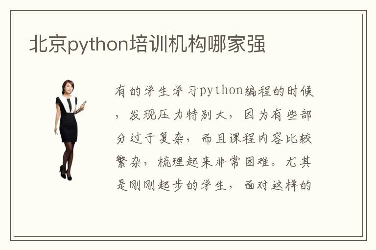 有的学生学习python编程的时候,发现压力特别大,因为有些部分过于复杂,而且课程内容比较繁杂,梳理起来非常困难。尤其是刚刚起步的学生,面对这样的问题,常常是非常被动,不知道如何解决。为了快速掌握python课程的内容,大家可以报名python辅导班,由老师带领大家快速解决应用的难点,提高学习的效率。北京python培训机构哪家强,主要看同学的需求,有些同学报班目的就是希望加快学习的进展,这时可以多对比培训机构的教学速度。python培训机构靠不靠谱,有些学校确实非常靠谱,综合水平高,可以安排多种课程,帮助学生梳理python知识结构,让大家对python技术有全面的认识。python的功能特别多,比如可以用在数据分析领域、数据库开发领域、网页开发领域等等。