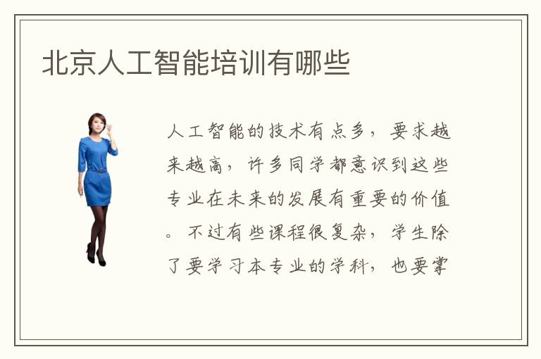 人工智能的技术有点多,要求越来越高,许多同学都意识到这些专业在未来的发展有重要的价值。不过有些课程很复杂,学生除了要学习本专业的学科,也要掌握其他专业的内容,如果学习效果不太好,要及时的调整一下学习的思路,比如报名辅导机构。北京人工智能培训有哪些,有一部分人工智能辅导机构的标准目标明确,就是要帮助大家快速提高工作的能力。同学的工作水平不是很强,或者没有了解过工作的要求,都可以选择这些补习班,熟悉各种工作应用的操作。人工智能辅导课程的时间大概一个月到半年,学习时间跟个人报名的课程和个人学习进度有直接的联系。人工智能有哪些课程,主要的课程有人工智能导论、深度学习、网络神经以及计算机算法、人工智能研究与应用等等。