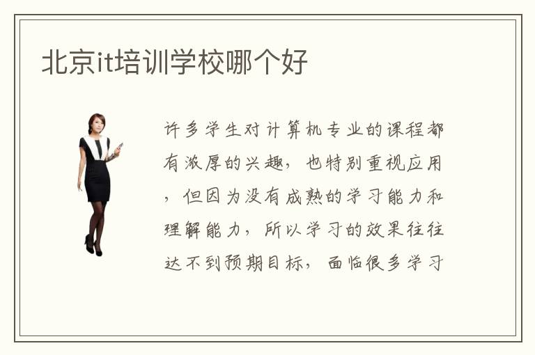许多学生对计算机专业的课程都有浓厚的兴趣,也特别重视应用,但因为没有成熟的学习能力和理解能力,所以学习的效果往往达不到预期目标,面临很多学习的问题。大家要想掌握计算机的知识,需要有长期的规划,不要期待一朝一夕就能完成。如果成绩很不理想,可以报班学习,由it老师安排课程,思路会更加清晰,效果也许会更好。北京it培训学校哪个好,应该根据同学的课程需要来判断。有些同学时间相当紧迫,要报名网络课程,这时可以看看培训班是否提供网络课程。it培训学校网络课程有重要的价值,因为同学可以从中了解很多内容,同时也能节约上特别多的时间。it前途怎么样,计算机专业的前途可以说非常广阔,因为计算机应用很普及,不管是专业化,还是家庭化,都需要大量的应用人才。