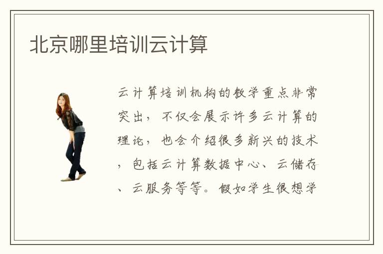 云计算培训机构的教学重点非常突出,不仅会展示许多云计算的理论,也会介绍很多新兴的技术,包括云计算数据中心、云储存、云服务等等。假如学生很想学习云计算的知识,但是找不到学习方向,都可报名专业的复习机构,从而得到更多进步。北京哪里培训云计算,很多培训机构都会提供云计算培训的项目,所以大家不用担心,如果发现云计算基础不够扎实,或者应用能力不够强,都不妨对比这些辅导机构的课程,找到自己满意的训练项目。云计算辅导班的优点主要就是介绍很多云计算应用领域的知识,学生完成这些应用的训练后,可以在工作中凸显出优势。另外不少学生都认为云计算太复杂,但辅导老师会为同学从简单到复杂,一一进行分析,使得大家的知识结构更加清晰。