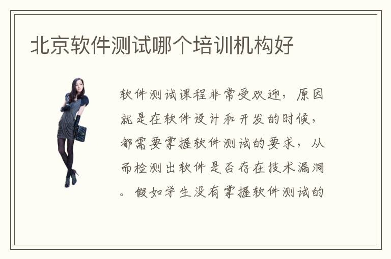 软件测试课程非常受欢迎,原因就是在软件设计和开发的时候,都需要掌握软件测试的要求,从而检测出软件是否存在技术漏洞。假如学生没有掌握软件测试的过程,也不知道如何确定软件的质量,很难确保软件的性能。北京软件测试哪个培训机构好,可以针对个人的课程需求进行选择,了解学校的课程是否能满足自己的要求。软件测试辅导机构的好处主要是梳理知识结构,为同学分析行业的动态,也会介绍大量轻松的课程,让大家的学习过程不枯燥。软件测试有哪些应用,主要应用就是软件功能检测、软件漏洞分析等等。在软件设计的时候,很多技术人员都忽略掉软件检测的重要性,导致软件功能达不到理想中的要求。所以大家要认真学习这些基本的技术,掌握正确的应用方法。