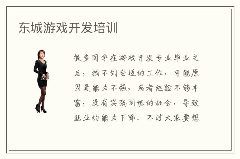 很多同学在游戏开发专业毕业之后,找不到合适的工作,可能原因是能力不强,或者经验不够丰富,没有实践训练的机会,导致就业的能力下降。不过大家要想快速找到工作,可以通过其他学习途径来达到目标。比如报名东城游戏开发培训学校,老师可以全方位指导,分析学生的能力和经验,介绍游戏开发的就业前景,便可快速减少学习压力。部分同学对游戏开发和设计的项目理解不充分,对游戏开发过程不够熟练,学习进度也慢,学习能力不强,所以会产生很多不必要的压力。要想取得比较好的成绩,应该认真学习一些前沿知识,关注行业的动态以及工作的要求,平时要认真做准备,了解不同行业的变化情况。如果发现行业的竞争压力太大,超过自己的承受能力,不妨选择专业补习班,迅速提高个人成绩。