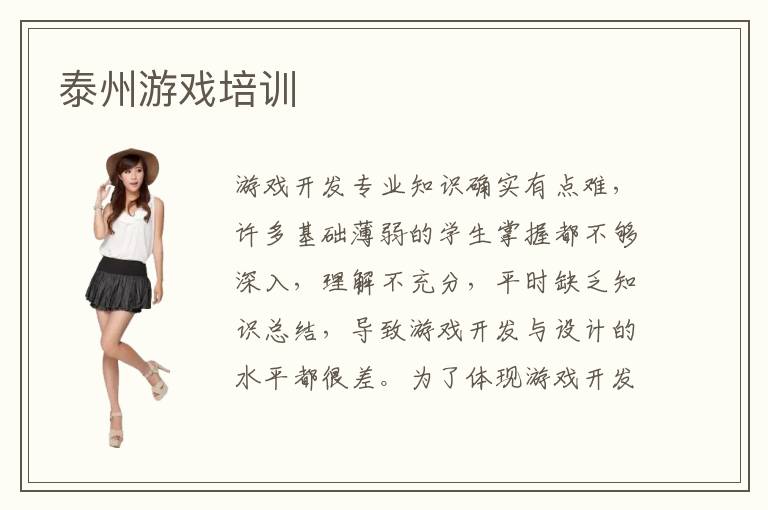 游戏开发专业知识确实有点难,许多基础薄弱的学生掌握都不够深入,理解不充分,平时缺乏知识总结,导致游戏开发与设计的水平都很差。为了体现游戏开发优势,学生不妨看看泰州游戏培训的内容,了解学习方法,掌握游戏开发的过程,从而在工作上获得晋升机会。游戏设计的前途相当广阔,许多游戏设计专业的同学毕业后,都可以获得满意的工作。不过在工作阶段要想有更大的晋升空间,学生不能够满足现状,而是要抓住基础,不断提高应用的水平,完成复杂的工作任务。部分学生在学习游戏开发专业知识的时候,理解能力不是很强,会遇到很多学习的难点。但不必忧虑,因为还有很多辅导班,同学报名后,得到更加系统的课程训练,学习效果都很好,学习质量也很高。