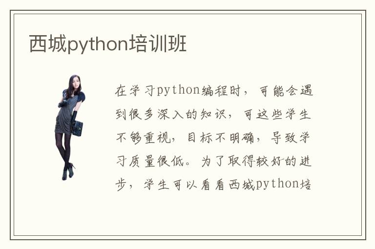 在学习python编程时,可能会遇到很多深入的知识,可这些学生不够重视,目标不明确,导致学习质量很低。为了取得较好的进步,学生可以看看西城python培训班,了解不同培训班的教育目标、教学的能力及专业水准等。有些学校确实很厉害,有大量的辅导资源,培训的目标明确。学生便可以了解自己想要掌握的知识,明确未来的走向,从而取得更多进步。python是什么,python是很重要的编程语言,可以实现与计算机的交互,完成很多应用的项目,包括软件开发与设计、网页开发、计算机运算。python应用非常多,如软件开发、网络爬虫、程序设计应用、网页优化等等,这些课程都很重要,而且对工作人员来说具有十分关键的价值,要是工作人员无法掌握这部分知识,很难在工作中体现优势。