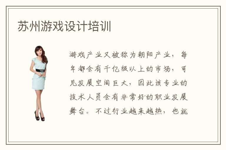 游戏产业又被称为朝阳产业,每年都会有千亿级以上的市场,可见发展空间巨大,因此该专业的技术人员会有非常好的职业发展舞台。不过行业越来越热,也就意味竞争压力越大,所以专业人员要认真做准备,了解行业的动态和专业技术的发展方向,掌握前沿的知识,不能随便应付。苏州游戏设计培训设计培训学校有很好的课程,会帮助学生缓解学习压力,降低学习难度,分享学习经验。不少学员都感觉到游戏专业的课程难,因此学习压力很大。但辅导老师会利用趣味性的课程,让大家更快缓解身心压力。如何选择游戏设计辅导班,成为游戏设计师之前,假如个人的能力不是很强,可以选择辅导班的帮助。选择过程中,可以看看辅导班的能力、教学方法、培训课程口碑和排名情况等等。