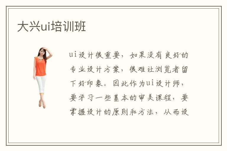 ui设计很重要,如果没有良好的专业设计方案,很难让浏览者留下好印象。因此作为ui设计师,要学习一些基本的审美课程,要掌握设计的原则和方法,从而设计出让人满意的作品。如果还在初学阶段,没有学习途径,学生不妨考虑报名大兴ui培训班,老师会讲解重要知识,帮助学生巩固基础,提升设计的水平,从而使学生达到ui设计师要求。而且老师会这样把整个培训阶段划分为不同难度的ui设计课程,学生要是在某个环节出现很多问题,影响学习的进度,老师会适当留出更多时间,让学生有更多理解的机会。另外老师一般都有很多年的教学经验,对同学的疑问非常清楚,也会制定很多严谨的ui设计教学方案。学生只要听老师的课程,然后完成课后作业,完善自己的知识结构,水平会高很多。