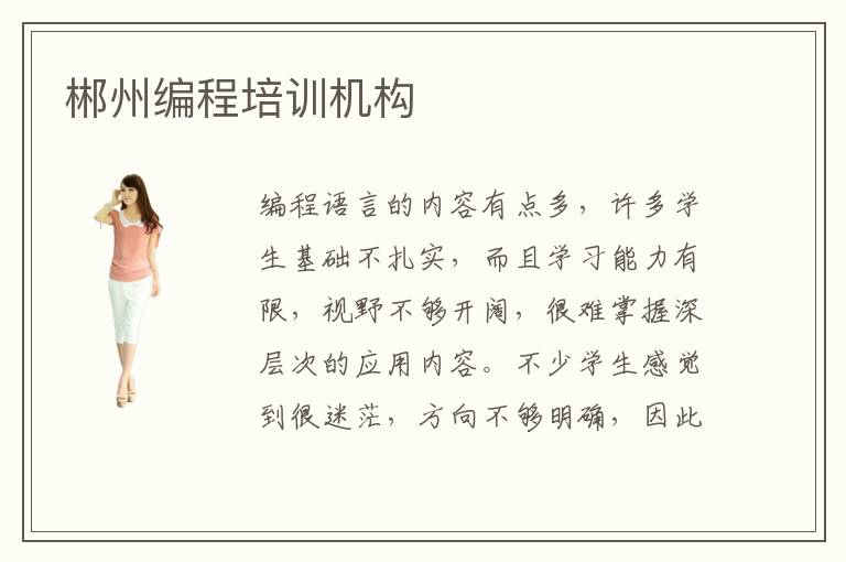 编程语言的内容有点多,许多学生基础不扎实,而且学习能力有限,视野不够开阔,很难掌握深层次的应用内容。不少学生感觉到很迷茫,方向不够明确,因此出现负面的循环。这时不妨看看郴州编程培训机构,老师一般都有很严谨的培训方案,帮助学生解决编程语言应用的难题,还能分享大量的编程辅导经验。学生掌握这些知识后,可以在工作上有更好的发挥。编程可以用来做什么,编程是实现人与计算机交流的语言,在命令计算机完成某些指令的时候,是通过技术人员编程代码实现的。现在有非常多软件编程,如php、java,python等等。作为专业人员,要理解至少两种以上,以后完成应用的项目也会变得非常简单。而且要多多应用,不要只关注理论知识,以免纸上谈兵。