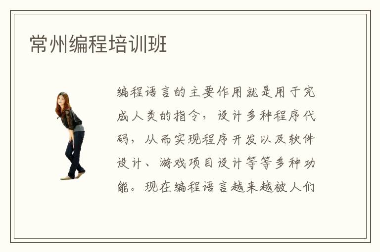 编程语言的主要作用就是用于完成人类的指令,设计多种程序代码,从而实现程序开发以及软件设计、游戏项目设计等等多种功能。现在编程语言越来越被人们重视,也会应用到很多领域中,技术人员要抓紧时间及时掌握,跟上时代的步伐,取得更多进步。如果能力不太强,可以报名常州编程培训班,老师把编程语言的应用方法和思路带给大家,学生掌握后,也可以发挥很强的应用优势。编程有什么用,编程语言有多种,不同类型的功能也有变化,比如python编程,可以用于文本处理和数学处理、图形处理等等,方便快速,而且适用范围很广。编程语言有哪些类型,主要类型有Java编程,php编程,python编程,c语言。这些编程语言的作用、特点、应用范围等等都有差异,所以要区别对待。