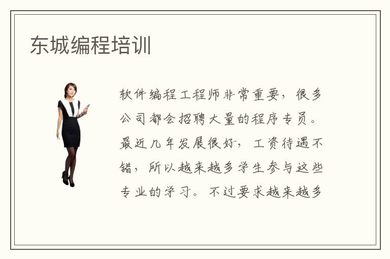 软件编程工程师非常重要,很多公司都会招聘大量的程序专员。最近几年发展很好,工资待遇不错,所以越来越多学生参与这些专业的学习。不过要求越来越多,难度越来越大,学生有时候感觉非常困难,不知道怎么样进步。东城编程培训编程培训学校对同学有非常多要求,首先就是要掌握编程员的语法练习基础和应用,关注不同编程语法知识的作用和使用范围。如果发现某些知识难点比较高,老师会进行详细分析,使大家的编程语言应用能力有比较大的突破。编程是什么,编程语言的主要作用就是实现人与计算机交互,两者之间有充分的交流。编程要学什么,计算机软件专业人员还需要学习很多编程语言的知识,其中比较重要的有软件编程语言的语法结构、应用的范畴、基本语法知识。