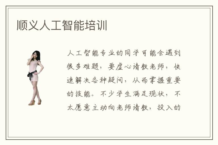 人工智能专业的同学可能会遇到很多难题,要虚心请教老师,快速解决各种疑问,从而掌握重要的技能。不少学生满足现状,不太愿意主动向老师请教,投入的学习时间不够多,学习进度很慢。这时可以通过报名顺义人工智能培训学校的方式,快速提高效率,完成人工智能专业的工作要求,达到更高的工作水平。人工智能有什么应用,人工智能的应用非常丰富,对人们的影响也非常大,比如智能检测、自动化机器人、安全识别、人脸识别。这些应用都有很高的价值,也是未来重要的发展方向,值得大家深入学习。有很多学生报名人工智能网络课程,原因在于这些课程的时间利用率非常高,学生在平时的碎片时间就能打开电脑学习,或者在家里上课,不用特地到当地的培训班学习。
