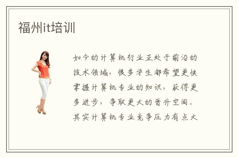 如今的计算机行业正处于前沿的技术领域,很多学生都希望更快掌握计算机专业的知识,获得更多进步,争取更大的晋升空间。其实计算机专业竞争压力有点大,学生如果没有做好准备,技术水平不够强,可能被他人淘汰。福州it培训学校会分享许多计算机专业的学习方法,也会针对it行业的现状以及it专业的前景,制定计算机的课程,同学掌握这些课程后,成绩会高非常多。而且辅导机构会十分重视同学的应用水平,在训练的时候,会将许多应用的知识与理论的知识综合在一起,使大家的程序应用和软件系统开发能力变得更强。不过辅导机构只能作为短暂的陪伴,学生在完成辅导机构的教学内容后,还需要花更多时间思考和总结,接触更多应用方面的案例,才能真正提升个人的实力。
