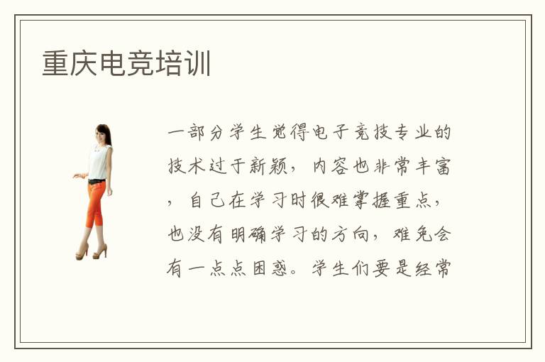一部分学生觉得电子竞技专业的技术过于新颖,内容也非常丰富,自己在学习时很难掌握重点,也没有明确学习的方向,难免会有一点点困惑。学生们要是经常有这种困惑,可以找到合适的重庆电竞培训学校,由专业的机构安排重点课程,一般都可以帮助大家迅速掌握电竞游戏专业的课程,也可以在学习过程中享受乐趣。电竞辅导班效率高吗,电竞辅导班的培训效率非常高,主要是因为这些辅导机构会针对同学的每一个问题进行严格的培训,学生的进步效果会很好。电竞专业的前景不错,有一些技术人员在应聘某些电竞专业的岗位时,可以找到工资待遇很高的工作。但由于技术发展很快速,所以技术人员要跟上时代的步伐,学习更多新颖的知识,才不至于被以后的优秀同事淘汰。