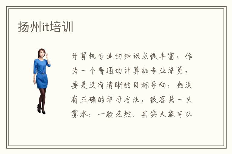计算机专业的知识点很丰富,作为一个普通的计算机专业学员,要是没有清晰的目标导向,也没有正确的学习方法,很容易一头雾水,一脸茫然。其实大家可以报名扬州it培训学校的课程,老师有实用的教学方法,而且也会采用有效的引导方式,帮助大家控制学习速度,提高学习质量,改善计算机专业应用的水平。it培训速度相当迅速,不少技术人员在短期内掌握计算机的基础知识,而且有更加系统的知识结构。如果大家有兴趣,可以报名这些辅导机构,从而达到比较高的水准。it的应用很广泛,技术人员掌握计算机的知识后,可以完成很多这样复杂的任务,包括程序应用、程序设计、程序开发、大数据分析、数据库管理等等。因为课程很重要,所以专业人员要多花时间练习。