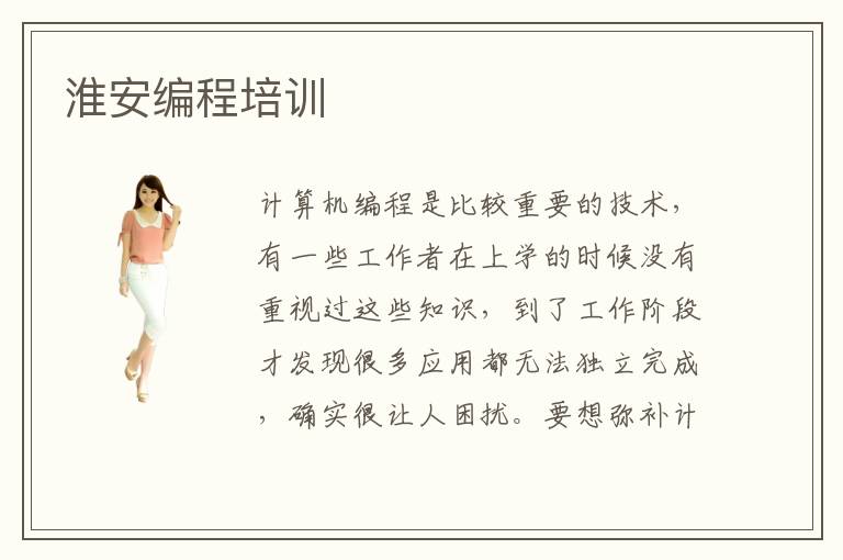 计算机编程是比较重要的技术,有一些工作者在上学的时候没有重视过这些知识,到了工作阶段才发现很多应用都无法独立完成,确实很让人困扰。要想弥补计算机编程的知识,需要多投入时间,掌握基础内容,包括编程语法知识、数据结构、编程应用流程、应用环境等等。如果觉得这些课程过于复杂,可以选择淮安编程培训。老师不仅会重视同学的编程理论,也会介绍大量应用,帮助同学实现应用的目标。编程网络辅导有比较明显的作用,因为很多报名的学员都是上班族,朝九晚六,没有太多空余时间,不得不考虑网络辅导机构。编程的类型特别多,比较常见的编程语言有python编程、Java编程、php编程,功能十分强大,可以用于软件开发、计算机系统设计、网络技术应用等等。