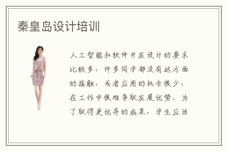 人工智能和软件开发设计的要求比较多,许多同学都没有这方面的接触,或者应用的机会很少,在工作中很难争取发展优势。为了取得更优异的成果,学生应该迎难而上,努力奋发,掌握重要技能。如果成绩不太好,可以参与秦皇岛设计培训,老师会把许多软件设计和软件开发等等知识带给大家。设计培训难吗,软件设计培训设计培训班的课程非常容易,因为老师可以结合同学的基础,制定严谨的课程,这些课程都是由浅入深,使得大家可以在个人能力范围内理解,就不会感觉到特别难。另外老师也有十分严格的评测,会针对工作岗位需要以及软件设计专业的要求,安排一些严格的训练计划,每当完成一次训练后,便需要进行评测,使大家迅速挖掘出需要弥补的领域,真正做到查漏补缺。