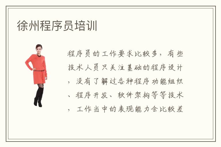 程序员的工作要求比较多,有些技术人员只关注基础的程序设计,没有了解过各种程序功能组织、程序开发、软件架构等等技术,工作当中的表现能力会比较差一点,也无法体现出技术优势,难以得到广阔的发展舞台。当然不少学生也意识到自身的局限,希望得到更多竞争优势,因而会报名徐州程序员培训课程。有一些辅导老师可以制定严谨的课程,帮助学生分析程序员的应用要求,解决实践当中的问题。程序员辅导班有非常多细致的训练方案,可以提供理论辅导应用辅导,以及大量的实践案例,帮助学生掌握程序员工作的要求。不少学生只关注书本课程,学习某些专业的学科时没有针对性,目标不明确,学习效率低,成绩也不理想。但得到辅导班的一些帮助后,成绩会更为显著。