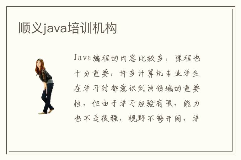 Java编程的内容比较多,课程也十分重要,许多计算机专业学生在学习时都意识到该领域的重要性,但由于学习经验有限,能力也不是很强,视野不够开阔,学习效率方面和应用方面都没有理想中的效果。为了达到比较好的学习成绩,学生可以参加顺义java培训机构,一般情况下,老师会全方位辅导,为同学分析基础的编程语言理论课程和应用课程,使得每一位学生发挥出很好的成绩。java的课程可谓相当多样,其中比较主要的课程有计算机编程语言框架、数据结构以及计算机算法、软件编程开发环境、基本的前端开发设计应用等等。java培训机构的辅导速度越来越快,原因在于机构提供很系统的课程,选择趣味性的教学方法,化解学习过程的难点,让大家更有动力去学习这些知识。
