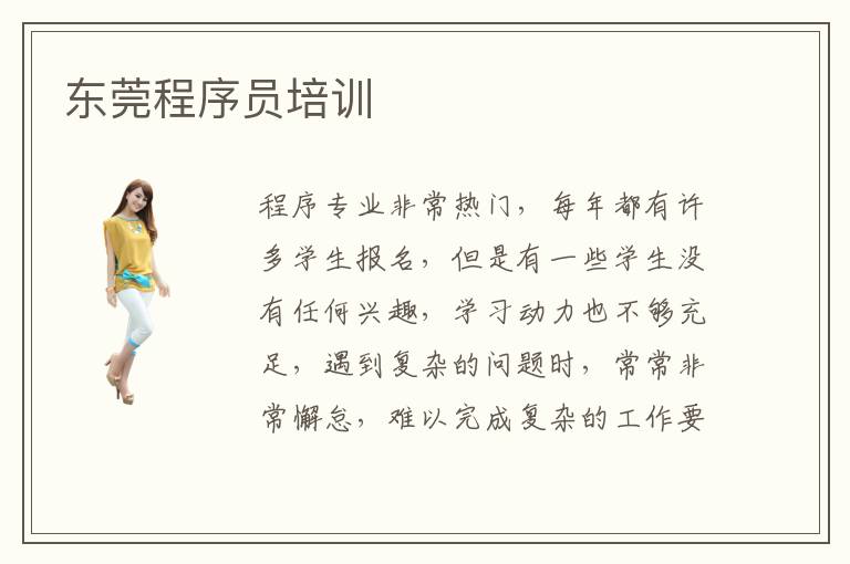 程序专业非常热门,每年都有许多学生报名,但是有一些学生没有任何兴趣,学习动力也不够充足,遇到复杂的问题时,常常非常懈怠,难以完成复杂的工作要求。要想快速提高程序应用能力,成为一名优秀的程序员,学生还可以参加东莞程序员培训,事先掌握各种应用的要求,然后再慢慢提高个人的应用能力,从而在工作岗位上得到更多的优势。程序课程有哪些,程序专业的同学需要掌握很多课程,其中比较重要的有程序设计、程序开发、网络功能、服务、基本的数据结构、数据分析等等。对一些基础不太好的同学来说,感觉这些课程会比较难,但是只要掌握一些基本的学习方法,效率会有很高的保障。程序培训班的作用在于帮助大家化解难题,减少学习的负担,提高学习的速度。