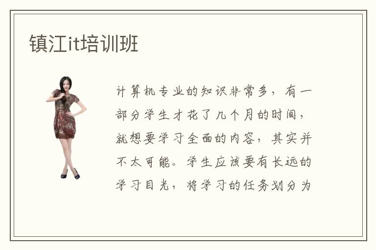 计算机专业的知识非常多,有一部分学生才花了几个月的时间,就想要学习全面的内容,其实并不太可能。学生应该要有长远的学习目光,将学习的任务划分为多个阶段,层层进行递进。为了提高计算机课堂的效率,学生可以参加镇江it培训班,老师会充分调动学生的积极性,分享许多专业的学习经验,同时也会深入浅出,为大家介绍专业的教材以及工作当中的应用,让大家的知识结构更加全面。it培训班的效率如何,计算机培训班的效率相当高,一般情况下老师制定2个月到4个月左右的课程,学生全程学习这些课程后,会有很明显的进步。另外it培训班的要求相当严格,只要同学在考试时有不同的疑问,老师都会重视,然后布置针对性的课程,这样学生的知识体系会更完善。