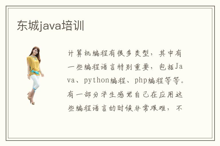 计算机编程有很多类型,其中有一些编程语言特别重要,包括Java、python编程、php编程等等。有一部分学生感觉自己在应用这些编程语言的时候非常艰难,不太懂得怎么样去完成编程代码的编写,不得不选择东城java培训的课程。其实学生不太懂编程语言的情况下,可以结合自身的薄弱环节选择适合自己的课程,从而针对性进行训练,提高个人的java编程应用水平。java是什么,java是一种高级编程语言,可以运用到特别多的领域,其中网络开发、前端设计、后端开发、网络优化、数据分析等等,都有很重要的价值。java语言的特点就是功能十分强大,应用起来也很简单,编程代码的层次分明,技术人员在修改的时候会更简单。所以同学在从事计算机专业岗位的时候,可以着重了解这一些基础的编程。