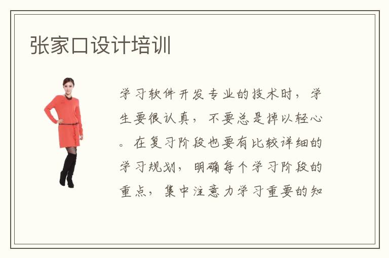 学习软件开发专业的技术时,学生要很认真,不要总是掉以轻心。在复习阶段也要有比较详细的学习规划,明确每个学习阶段的重点,集中注意力学习重要的知识。有一些学生感觉软件设计知识过于复杂,学习过程的负担很大,所以想由专业的张家口设计培训设计培训学校帮助自己快速解决烦恼。辅导学校会鼓励大家主动学习,制定全面的规划,分享软件设计的应用经验,也会帮助大家开阔视野,提高学习效率。软件设计课程收不收费,软件设计课程是需要收费的,不过费用并不算很高,多数学生都能接受,可能3000~6000就可以报名。软件设计有没有前景,软件设计的前景很广阔,因为当下有很大的需求量,而且学生也能找到比较理想的工作,在发展方面有更大的舞台,展示自己的才华。