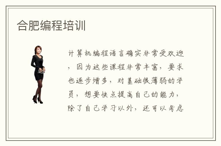 计算机编程语言确实非常受欢迎,因为这些课程非常丰富,要求也逐步增多,对基础很薄弱的学员,想要快点提高自己的能力,除了自己学习以外,还可以考虑专业的合肥编程培训。辅导老师会将细致的训练项目呈现给大家,分享很多重要的学习思路,减少学员的学习负担。编程行业的前途如何,其实这些专业的行情非常不错,首先就是发展比较快,薪资待遇不错,而且发展空间也比较大,但如果个人没有很好的技术能力,就算大环境再好,跟自己没有太大的联系。编程培训的效果如何,编程培训机构的专业辅导效果会非常不错,首先就是老师和同学之间有更多密切的交流,而且根据同学的能力安排任务清单,学生只需要安排好学习时间,跟上老师的节奏,完成老师指定的任务,情况都会显得不错。