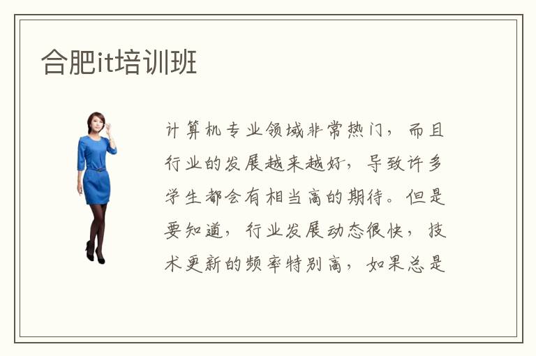 计算机专业领域非常热门,而且行业的发展越来越好,导致许多学生都会有相当高的期待。但是要知道,行业发展动态很快,技术更新的频率特别高,如果总是期待原地踏步,往往很难取得很好的表现,发展机会也会越来越少。因而在学习的时候,还是要与时俱进,不断去更新自己的知识库,优化个人的知识结构,这样子会有很好的工作机会。合肥it培训班,it培训班的入门教学很重要,因为学生的基础非常不扎实,可以从入门教学课程开始,一步步理解更多深层的课程。it培训班好不好,虽然当下的行业发展速度越来越快,而且行业的竞争压力也越来越大,如果大家不懂得怎么样去进步,都可以选择这样的辅导机构,相信未来的进步效果会非常好,对个人的发展也有很大的影响。